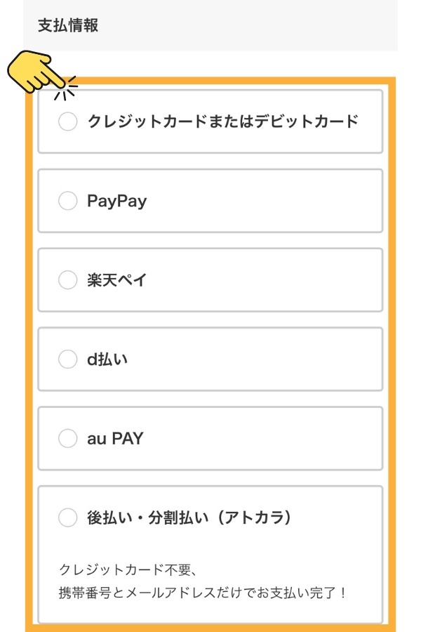 支払い方法はクレジットカード・電子マネー・各種決済に対応しており、自分に合った方法を選べます。
